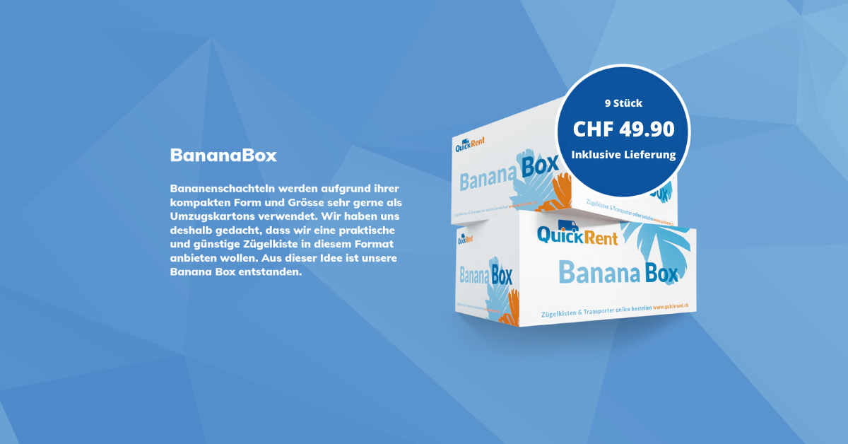 9 Bananen Box Zügelkartons, eine Big Banana Box und 40 Meter Klebeband für
